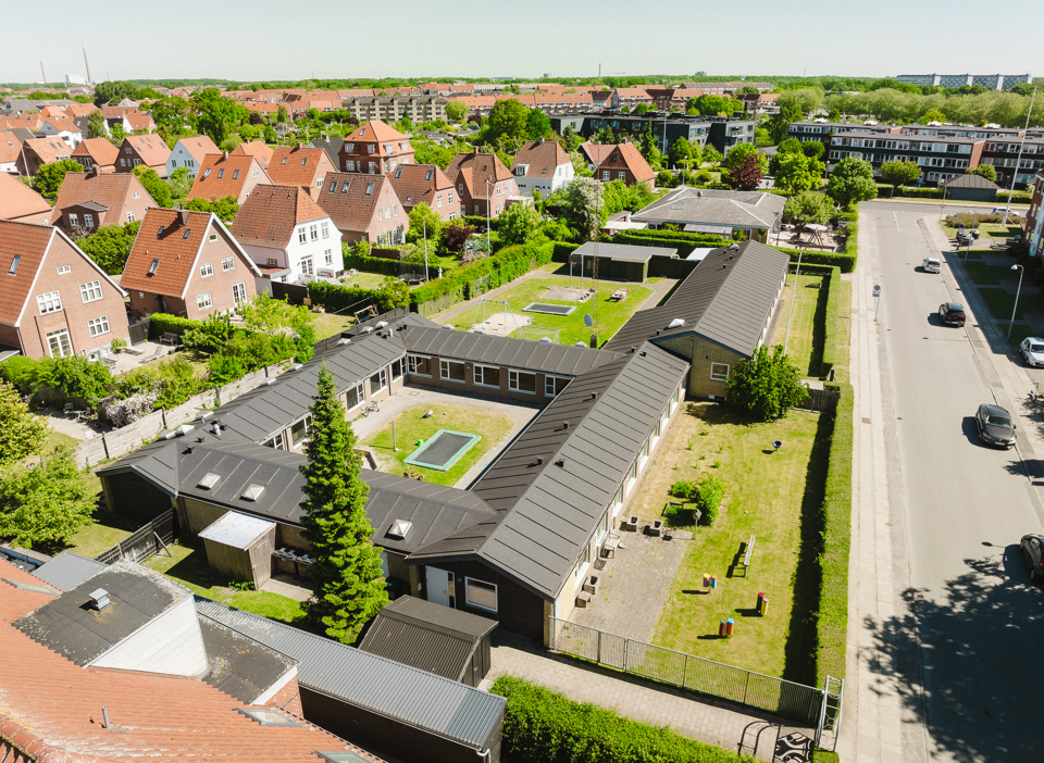 Bihuset Aflastning ligger på en lille vej i yderkanten af Odense centrum. Vi har en stor legeplads, en mindre gård og en lukket legeplads, der er omringet af bygninger på alle fire sider.
